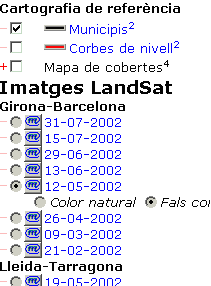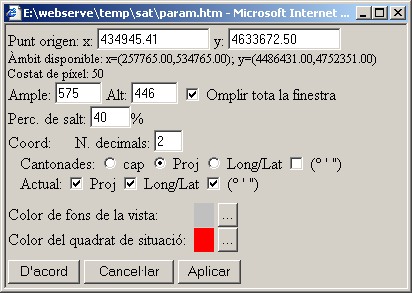 - Esquinas: Permite configurar el formato de visualización de las coordenadas que aparecen en las esquinas de la vista. La visualización puede ser: ninguna, según la proyección o en longitud/latitud. En este último caso, se puede escoger entre grados decimales o sexagesimales (grados, minutos y segundos)