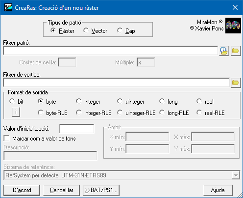 CreaRas: Creació d'un nou ràster