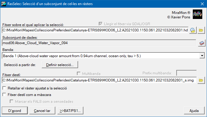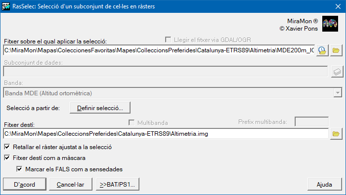 Addicionalment, l'aplicaciķ permet, optativament, fer un retall del rāster ajustat a l'āmbit geogrāfic de la selecciķ.