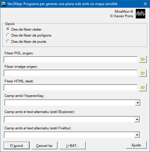 Aquesta aplicació genera una plana de web amb un mapa sensible a partir d'un fitxer VEC de polígons, POL o PNT i d'una imatge ràster en format GIF o JPG. Si es treballa amb un fitxer POL o PNT es pot definir les propietats que tindran les àrees sensibles del mapa a partir de la informació de que es disposa a les metadades.