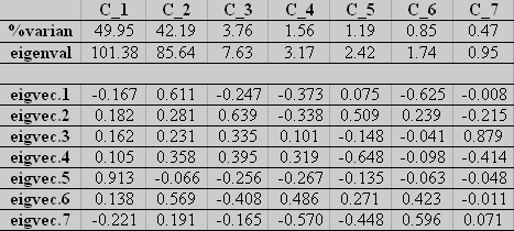 | Matrix of eigenvalues, eigenvectors, and percentage of variance associated with each component. |