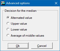 In quantile calculations, such as the median, it is possible to indicate, with the modifier /MEDIANA_EMPAT=, the type of tiebreaker to use for its calculation when the position of the quantile is between two values of the series. For more information, see general syntax.