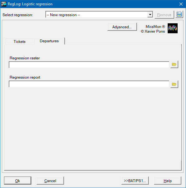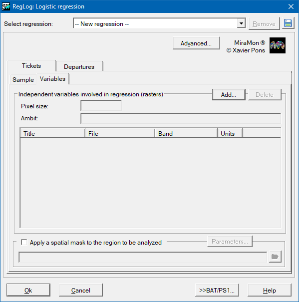 - RegLog Adjustment SampleFile ModelField Criteria Multirecord DTMOutput TXTOutput IndepVarFiles [/MOSTRA_VALORS_CRITERIS] [/CAMPY] [/MASCARA] [/CAMP_MASC] [/TAULA_MASC] [/OPER_MASC] [/CONSIDER_NODATA] [/CAMPX] [/REFSYSTEM] /ATR_MASC /PNTdeBD