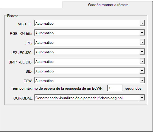 VisualizaciónMiraMon permite configurar varias opciones relativas a los Aspectos generales de la visualización en MiraMon como son, por ejemplo, el color de fondo inicial del área cliente (este parámetro se permite cambiar durante la sesión mediante la opción del menú Visualización | Color de fondo), el radio de representación de los vectores de punto (en píxeles de pantalla), etc. El parámetro de ancho de la pantalla es también un parámetro configurable, que es necesario para el cálculo preciso de la escala numérica. Algunas tarjetas gráficas (también sucede con las impresoras) fracasan al intentar dibujar objetos complejos (por ejemplo líneas de 20000 vértices). El parámetro 'MaxVertexsTargetaGraficaEx' permite definir cuál es ese valor límite para el equipo de la persona usuaria. Si un objeto lo sobrepasa, MiraMon lo simplificará con un algoritmo inteligente que normalmente no causa efectos estéticos indeseados. En el caso de objetos complejos, también se permite que MiraMon no dibuje los objetos que alcanzan un alto nivel de complejidad estableciendo el parámetro 'DibujaObjetosComplejos' a 0. De este modo, se puede trabajar con polígonos de, por ejemplo, 50000 vértices, sin redibujarlos en las vistas que obliguen a un número de vértices superior a 'MaxVertexsTargetaGraficaOImpressora' y así obtener redibujados más rápidos. En el momento de imprimir, simplemente es necesario activar de nuevo Visualización | Especial | Dibujar objetos complejos. También se permite indicar si se desea llenar el interior de los polígonos con colores al abrir el primer archivo de esta tipología. En relación al color asignado a los valores sindatos (también denominados NODATA, valores de fondo y flag values), en caso de que un archivo contenga, MiraMon permite que la persona usuaria asigne el último color incluido en la paleta seleccionada como color para los píxeles o entidades marcados con ese valor de fondo. También se permite seleccionar mantener la vista actual al abrir un nuevo mapa, parámetro que también se permite cambiar durante la sesión mediante la opción del menú Visualización | Especial | Mantener vista actual al abrir nuevo mapa o nueva capa. Cuando un archivo pertenece a una serie cartográfica y se guarda un mapa, se puede optar por mantener los lazos de visualización y leyenda generales de la serie o por guardar las características actuales de visualización y leyenda. Después de efectuar una consulta por localización puede ser conveniente redibujar toda la pantalla para evitar artefactos de solapamiento de polígonos que tapen puntos, etc. La opción más rápida es no redibujar, y en caso de que se presente algún error en la visualización, forzar un redibujado a través del botón En el caso de la visualización de objetos sin atributos, cuando una entidad de tipo punto no tiene registro en la base datos, o lo tiene vacío (en blanco), MiraMon incorpora un parámetro, cuyo valor debe ser >=0, que permite definir el radio para dibujarlo. Análogamente al caso de entidades de tipo línea/arco, se permite determinar el grosor, cuyo valor también debe ser >=0. Por último se permite definir, en los casos de objetos sin atributos, el color de los objetos (R,G,B), donde cada componente debe estar dentro del rango [0,255]. MiraMon también permite que la persona usuaria configure el color para selecciones con el que se destacan los elementos al realizar una selección. Este parámetro se puede cambiar durante la sesión a través del menú Visualización | Color para selecciones. También se permite determinar el Porcentaje de la ventana ocupado por la selección, definir si se desea centrar la selección en la ventana así como también determinar si la escala afecta a la visualización de los objetos seleccionados.