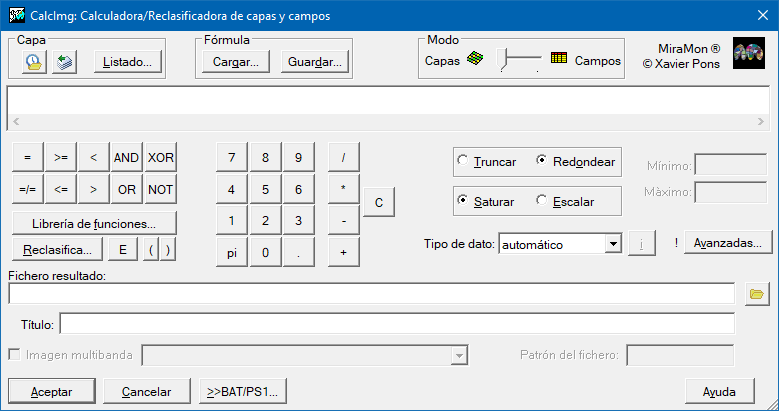 Conceptos generalesLas opciones del menú Herramientas mayoritariamente ejecutan las aplicaciones de soporte a MiraMon, programas que permiten realizar muchas operaciones de análisis, geometría, etc, con rásters y vectores. Algunas de estas aplicaciones se encuentran agrupadas por temáticas (mantenimiento de ficheros, organización espacial, etc). En algunos casos, una misma aplicación está incluida en dos o más agrupaciones temáticas. Sin embargo, se debe que tener presente que algunas aplicaciones de soporte de MiraMon se encuentran dentro de otros menús, como es el caso de las aplicaciones de importación y exportación, que se localizan dentro de menú Fichero, o las aplicaciones de estructuración topológica que se encuentran dentro del menú Edición. Se puede consultar información sinóptica sobre las funcionalidades de todas las MSA, el menú desde donde pueden abrirse, etc, en Aplicaciones de Soporte a MiraMon (MSA). También se incluye dentro de este menú el acceso al Gestor Universal de Metadatos Geoespaciales (GeM+), que permite crear, visualizar y editar los metadatos asociados a una base cartográfica determinada en formato MiraMon. Por otra parte, también en el menú Herramientas se ha incorporado el acceso al Bloc de notas y a la Calculadora científica de Windows, por ser de utilidad en varios procesos con rásters y vectores y para ejemplificar que es viable introducir accesos a otras aplicaciones desde el menú MiraMon. Para más información sobre la configuración personalizada de los menús, se puede consultar el apartado Menús de la explicación de Configuración de parámetros que se incluye en el menú Ayuda. Gestor Universal de Metadatos GeoespacialesEl Gestor Universal de Metadatos Geoespaciales de MiraMon (en adelante GeM+) es una aplicación para plataformas de Windows, que permite crear, visualizar y editar los metadatos asociados a una base cartográfica determinada en formato MiraMon. Constituye una de las Aplicaciones de Soporte a MiraMon. Esta aplicación puede ser lanzada desde el propio MiraMon (Herramientas | Gestor de Metadatos) o ejecutada de forma independiente. Para más información se puede consultar los documentos recogidos en la sección Gestor Universal de Metadatos Geoespaciales. ![]() Calculadora/Reclasificadora de rásters, vectores y tablasEsta aplicación permite realizar reclasificaciones y operaciones matemáticas y lógicas, simultáneamente, sobre capas de cualquier tipo (rásters, vectores estructurados y vectores no estructurados), en cualquier número y en cualquier directorio. Para más información en relación al funcionamiento del programa, la sintaxis, etc, se puede consultar CalcImg: Calculadora/Reclasificadora de capas y campos: Análisis matemático y lógico. ![]() Combinación analítica de capasEsta aplicación analiza y/o efectúa el cruce espacial de dos capas ráster, una capa ráster y una vectorial o dos capas vectoriales. Para más información en relación al funcionamiento del programa, la sintaxis, etc, se puede consultar CombiCap: Combinación analítica de capas ráster y vectoriales. ![]() Generación de buffers y mapas de distanciasLa aplicación permite tanto generar mapas de distancias continuas (resultado ráster) como áreas de influencia (buffers) a una cierta distancia de las entidades diana (resultado ráster o vectorial):