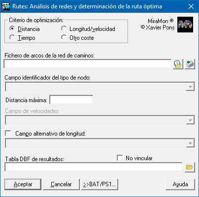 ![]() Análisis de redes (rutas)La aplicación determina las rutas óptimas entre un conjunto de localizaciones origen y un conjunto de posibles localizaciones destino. La ruta óptima entre un par de localizaciones origen-destino será aquella que minimice el desplazamiento para ir del origen al destino, ya sea en tiempo, distancia o por un campo numérico definido por la persona usuariaria que represente cualquier otra variable que pondere el coste del desplazamiento. Para más información en relación al funcionamiento del programa, la sintaxis, etc, se puede consultar Rutes: Análisis de redes y determinación de la ruta óptima.
