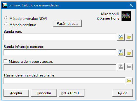 Esta opción calcula la emisividad mediante el método de umbrales NDVI (Sobrino 2000).