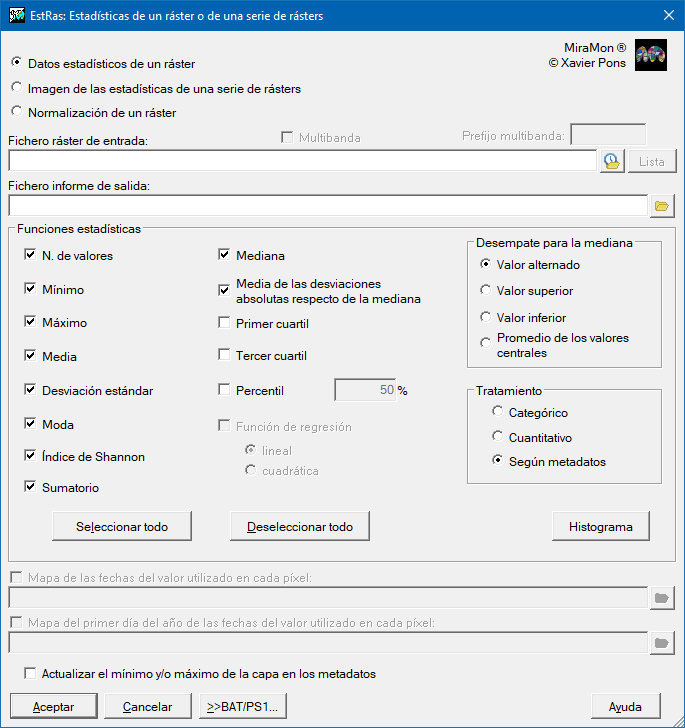 - EstRas 1 FicheroIMG FicheroINI Tratamiento [/N_VAL] [/MIN] [/MAX] [/MITJANA] [/DESV_STD] [/MEDIANA] [/DESV_MEDIANA] [/MODA] [/I_SHAN] [/1Q] [/3Q] [/MULTIBANDA] [/MEDIANA_EMPAT] [/PERCENTIL] [/SUMATORI]