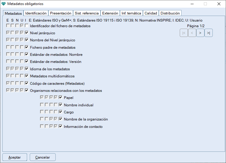 Pestaña de Metadatos