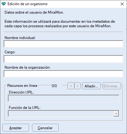 Permite, por ejemplo, rellenar el "Nombre individual", el "Cargo", el "Nombre de la organización", y algunos recursos en línea: