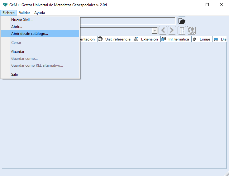 Seleccionando la opción del menú "Fichero | Guardar", se guardarán los metadatos con sus modificaciones directamente en el catálogo.