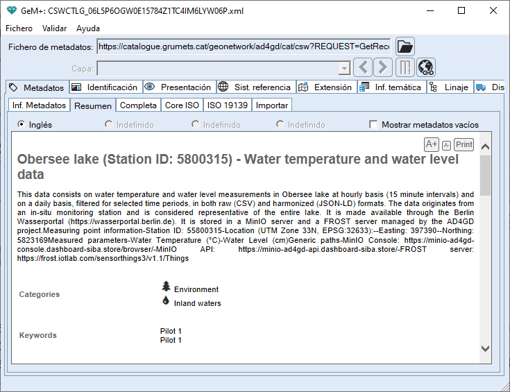 A partir de aquí se puede navegar por los metadatos desde GeM+ o editarlos de la manera habitual.