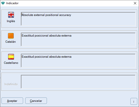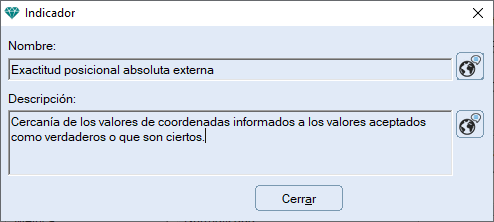 Podemos consultar el nombre y la descripción idiomática, así como la URL que nos enlaza con el diccionario de calidad, que contiene la definición de la medida, a partir del botón