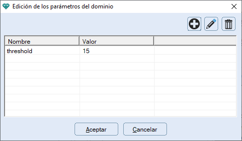 Un dominio puede tener uno o varios parámetros. Seleccionando un dominio y a partir del botón