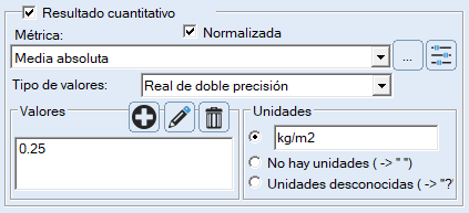 Si el elemento tiene un resultado de tipo cuantitativo, hay que especificar la métrica usada para aplicar la medida, el/los valor/es obtenidos y las unidades si aplican.