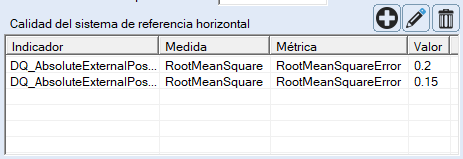 En la ventana que engloba los elementos de calidad de cada componente correspondiente, encontraremos una tabla donde se muestra el resumen de los elementos y tres botones para añadir, modificar o eliminar un elemento de calidad.
