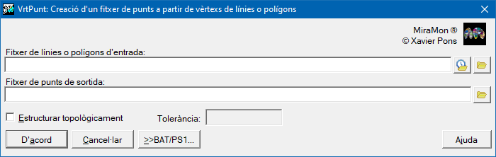Si es demana estructuració topològica l'aplicació combinarà geomètricament els punts d'acord amb la tolerància indicada i, a més, generarà registre múltiple si els atributs del punt són diferents (per exemple la longitud de la línia de la qual provenen). Si no voleu aquests registres múltiples, elimineu prèviament els camps no desitjats de la capa de línies o de polígons amb el MiraD (o amb el GestBD si us cal fer-ho massivament sobre molts fitxers), o bé elimineu-los posteriorment amb l'opció d'eliminació de registre múltiple del GestBD.