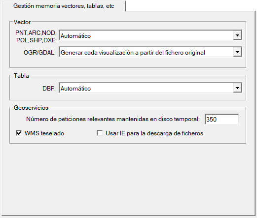 VisualizaciónMiraMon permite configurar varias opciones relativas a los Aspectos generales de la visualización en MiraMon como son, por ejemplo, el color de fondo inicial del área cliente (este parámetro se permite cambiar durante la sesión mediante la opción del menú Visualización | Color de fondo), el radio de representación de los vectores de punto (en píxeles de pantalla), etc. El parámetro de ancho de la pantalla es también un parámetro configurable, que es necesario para el cálculo preciso de la escala numérica. Algunas tarjetas gráficas (también sucede con las impresoras) fracasan al intentar dibujar objetos complejos (por ejemplo líneas de 20000 vértices). El parámetro 'MaxVertexsTargetaGraficaEx' permite definir cuál es ese valor límite para el equipo de la persona usuaria. Si un objeto lo sobrepasa, MiraMon lo simplificará con un algoritmo inteligente que normalmente no causa efectos estéticos indeseados. En el caso de objetos complejos, también se permite que MiraMon no dibuje los objetos que alcanzan un alto nivel de complejidad estableciendo el parámetro 'DibujaObjetosComplejos' a 0. De este modo, se puede trabajar con polígonos de, por ejemplo, 50000 vértices, sin redibujarlos en las vistas que obliguen a un número de vértices superior a 'MaxVertexsTargetaGraficaOImpressora' y así obtener redibujados más rápidos. En el momento de imprimir, simplemente es necesario activar de nuevo Visualización | Especial | Dibujar objetos complejos. También se permite indicar si se desea llenar el interior de los polígonos con colores al abrir el primer archivo de esta tipología. En relación al color asignado a los valores sindatos (también denominados NODATA, valores de fondo y flag values), en caso de que un archivo contenga, MiraMon permite que la persona usuaria asigne el último color incluido en la paleta seleccionada como color para los píxeles o entidades marcados con ese valor de fondo. También se permite seleccionar mantener la vista actual al abrir un nuevo mapa, parámetro que también se permite cambiar durante la sesión mediante la opción del menú Visualización | Especial | Mantener vista actual al abrir nuevo mapa o nueva capa. Cuando un archivo pertenece a una serie cartográfica y se guarda un mapa, se puede optar por mantener los lazos de visualización y leyenda generales de la serie o por guardar las características actuales de visualización y leyenda. Después de efectuar una consulta por localización puede ser conveniente redibujar toda la pantalla para evitar artefactos de solapamiento de polígonos que tapen puntos, etc. La opción más rápida es no redibujar, y en caso de que se presente algún error en la visualización, forzar un redibujado a través del botón En el caso de la visualización de objetos sin atributos, cuando una entidad de tipo punto no tiene registro en la base datos, o lo tiene vacío (en blanco), MiraMon incorpora un parámetro, cuyo valor debe ser >=0, que permite definir el radio para dibujarlo. Análogamente al caso de entidades de tipo línea/arco, se permite determinar el grosor, cuyo valor también debe ser >=0. Por último se permite definir, en los casos de objetos sin atributos, el color de los objetos (R,G,B), donde cada componente debe estar dentro del rango [0,255]. MiraMon también permite que la persona usuaria configure el color para selecciones con el que se destacan los elementos al realizar una selección. Este parámetro se puede cambiar durante la sesión a través del menú Visualización | Color para selecciones. También se permite determinar el Porcentaje de la ventana ocupado por la selección, definir si se desea centrar la selección en la ventana así como también determinar si la escala afecta a la visualización de los objetos seleccionados.