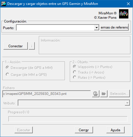 ![]() Importación/Exportación de GPS a MiraMonLa aplicación permite descargar y cargar objetos (puntos y líneas) de los modelos de GPS de la marca GARMIN a MiraMon a través de los puertos serie y USB del ordenador. Para más información en relación al funcionamiento del programa, la sintaxis, etc, se puede consultar GarminMM: Intercambio de datos con un GPS Garmin.