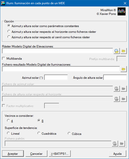Para más información en relación al funcionamiento del programa, la sintaxis, etc, se puede consultar Illum: Iluminación en cada punto de un MDE.