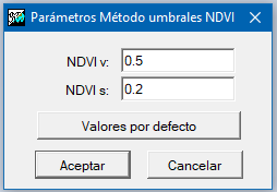 Esta opción calcula la emisividad mediante el método de umbrales NDVI (Sobrino 2000).